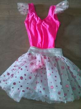 בגד גוף ורוד וחצאית כסופה נקודות
